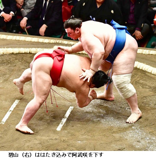 ▽碧山に阿武咲は碧山がはたき込み。