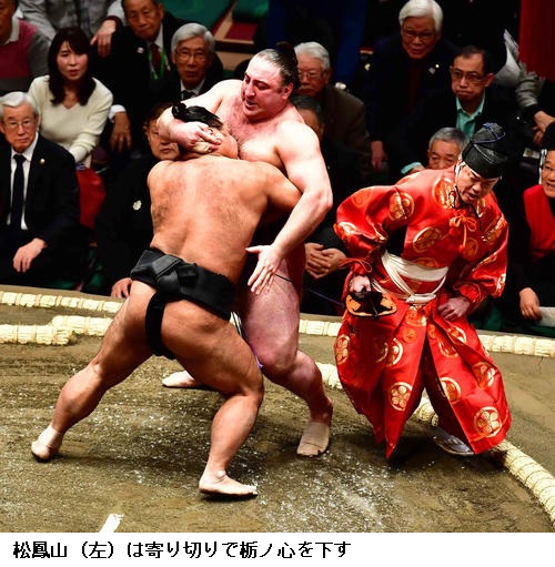 ▽松鳳山に栃ノ心は松鳳山が寄り切り。