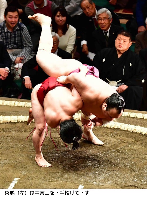 ▽宝富士に炎鵬は炎鵬が下手投げで勝ちました。