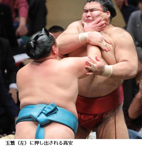 ▽玉鷲に大関復帰を目指す高安は玉鷲が押し出し。