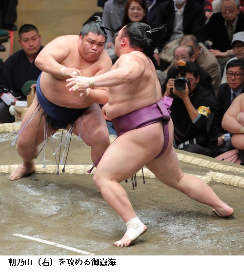 ▽三役明暗 先場所、新三役の小結だった朝乃山が新関脇。高砂部屋からは07年秋場所の朝赤龍以来、富山県からは86年秋場所の琴ケ梅以来戦後3人目、近大出身では16年秋場所の宝富士以来3人目。三段目付け出しデビューでは初。