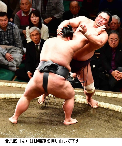 ▽大関 貴景勝に妙義龍は貴景勝が押し出し。