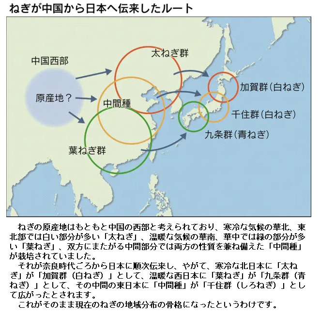 ねぎの原産地は諸説ありますが、中国の西部または西シベリア南部のアルタイ地方ではないかといわれています。中国では古代から栽培されていて、6世紀頃の書物には栽培法が記されているそうです。
