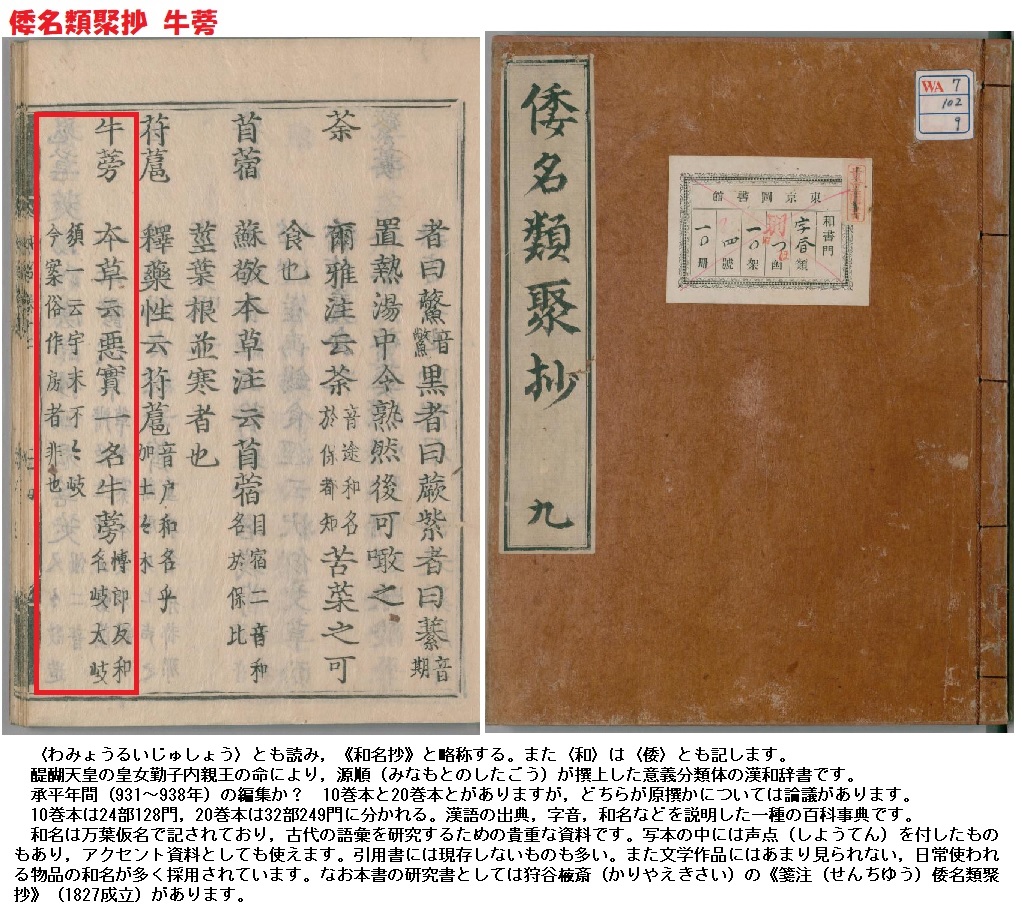 古く、日本では「牛蒡」を「キタキス」「ウマフフキ(ウマフブキ)」ともいった。