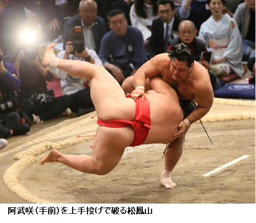 ▽阿武咲に松鳳山は、松鳳山が上手投げで6勝目。