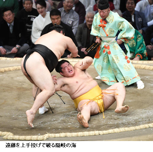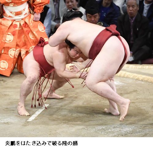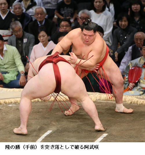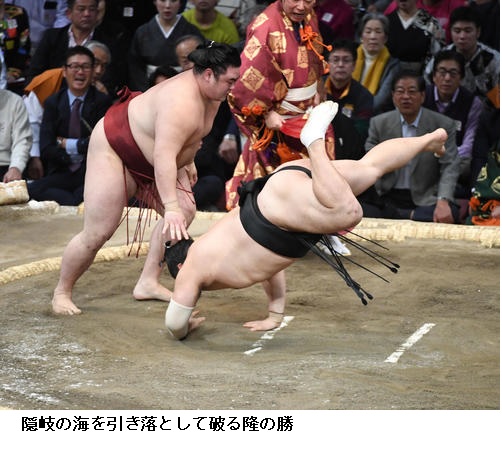 ▽隆の勝に隠岐の海は隆の勝が引き落とし。