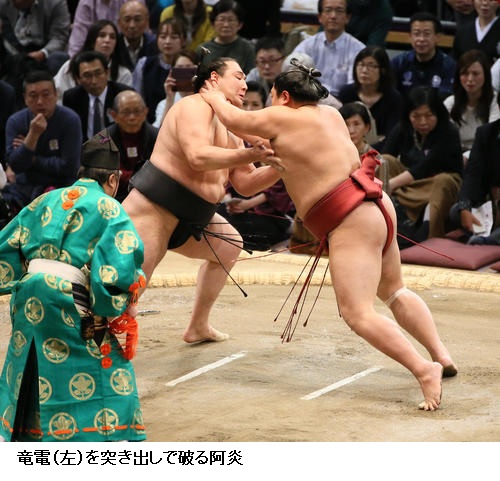 ▽阿炎に竜電は、阿炎が突き出しで5勝目。