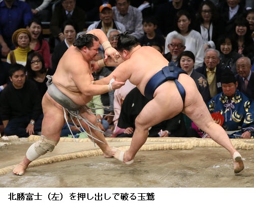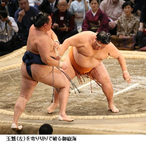 ▽玉鷲に大栄翔は玉鷲が押し出し。