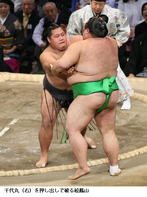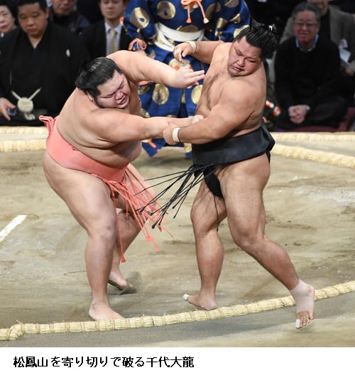 ▽千代大龍に松鳳山は千代大龍が寄り切り。