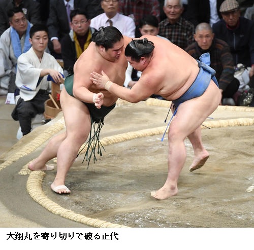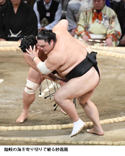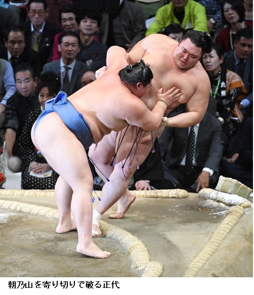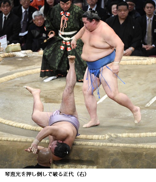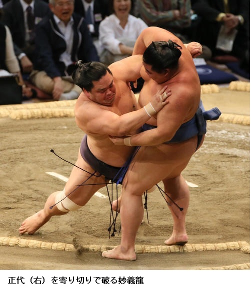 ▽正代に妙義龍は、妙義龍が寄り切り。正代は4敗目を喫しました。