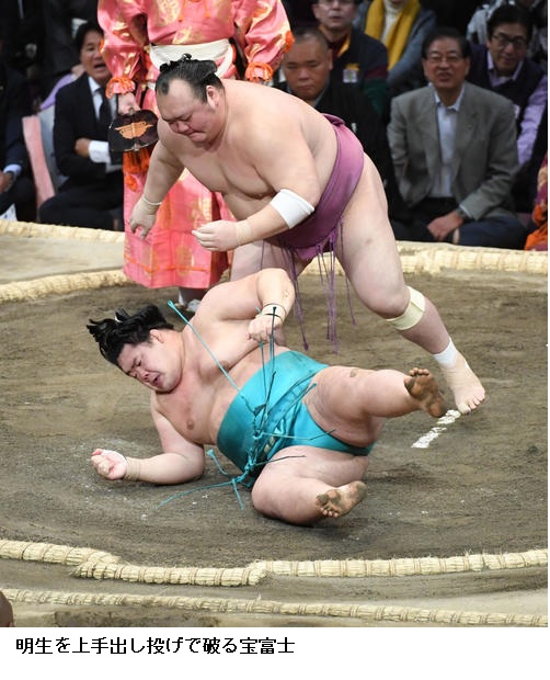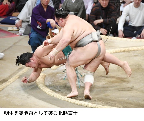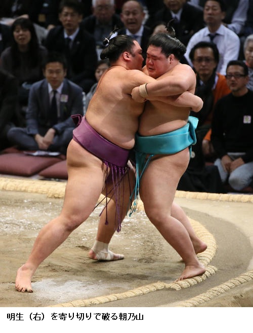 ▽妙義龍に明生は、明生が突き落としで勝ちました。