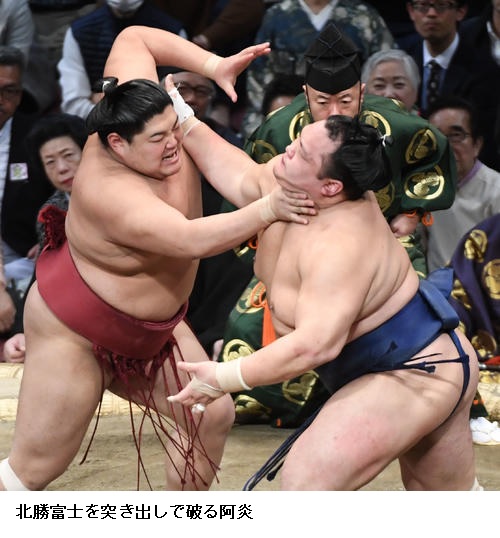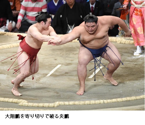6勝目を挙げて白星が先行した炎鵬は「立ち合いもまっすぐいって、押し負けなかったし、相手の攻めもよく見えた。ここからが正念場。自分を信じ切りたい」と話しました。