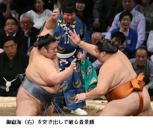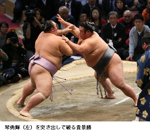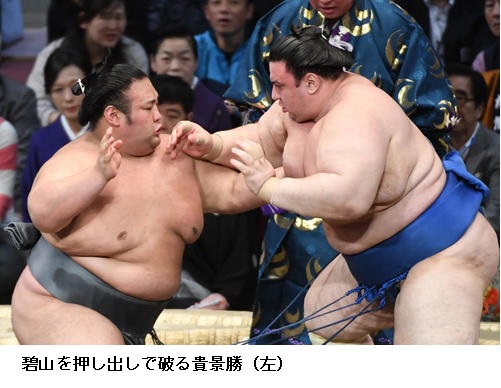 ▽大関 貴景勝に碧山は貴景勝が押し出しで勝って大関復帰の場所で勝ち越しました。