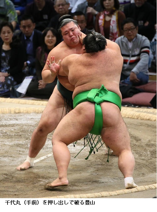 ▽千代大龍に豊山は千代大龍が引き落とし。