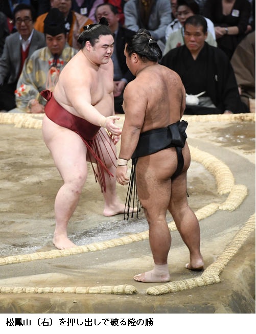 ▽松鳳山に隆の勝は隆の勝が押し出し。