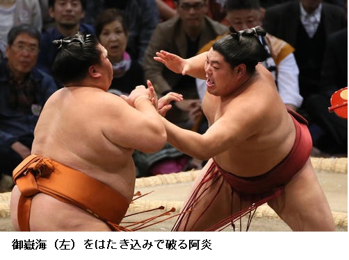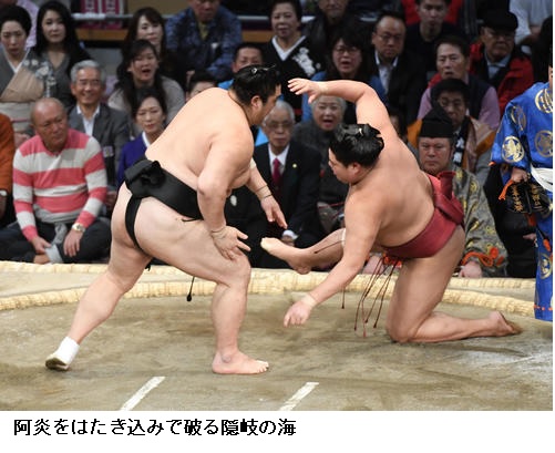 ▽阿炎に隠岐の海は隠岐の海がはたき込み。