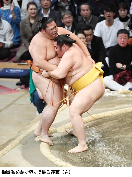 ▽御嶽海に遠藤は遠藤が寄り切りました。御嶽海は6敗目で今場所、2桁勝利には届かなくなりました。