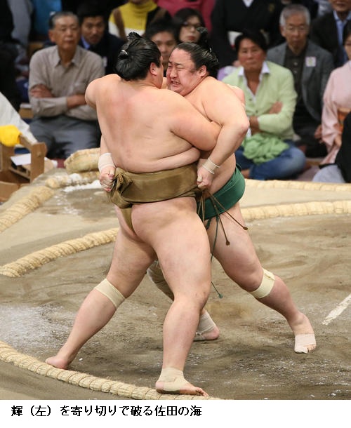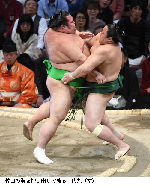 ▽千代大龍に佐田の海は、佐田の海が送り倒しで6勝目です。