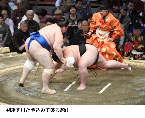 ▽剣翔に照強は剣翔がはたき込みで勝ちました。