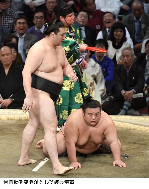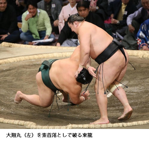 ▽琴奨菊に千代大龍は琴奨菊が下手投げ。