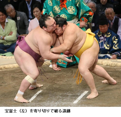 ▽隠岐の海に宝富士は隠岐の海が押し出し。
