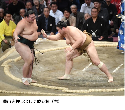 勝ち越しを決めた輝は「しっかり落ち着いてあせらず相撲を取ることができた。あと4番あるので、どこまでこの相撲ができるか」と話しました。