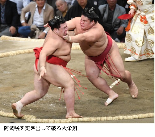 ▽阿武咲に大栄翔は、大栄翔が突き出しで勝ち越し。
