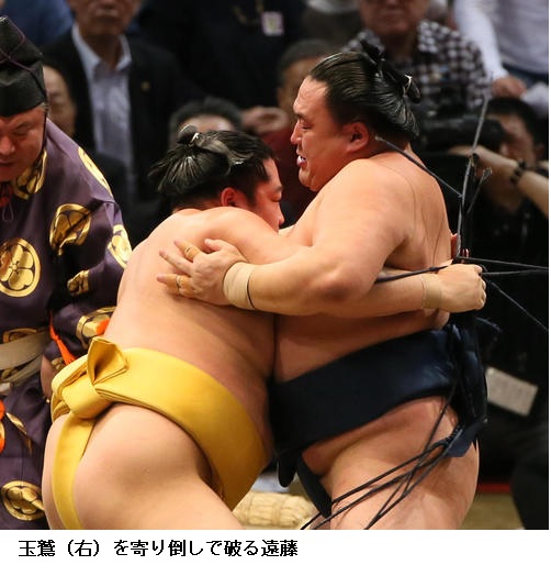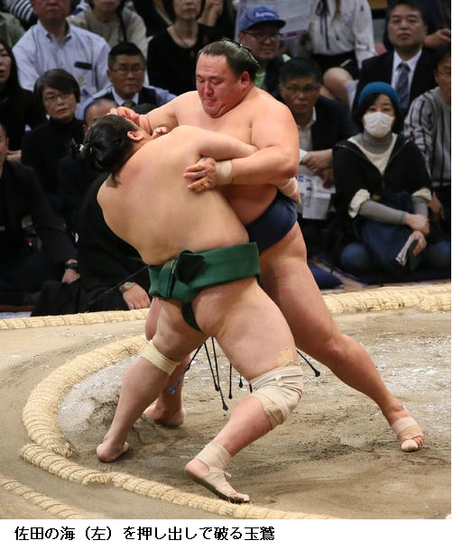 ▽玉鷲に佐田の海は玉鷲が押し出しで勝ち越し。佐田の海は負け越しました。