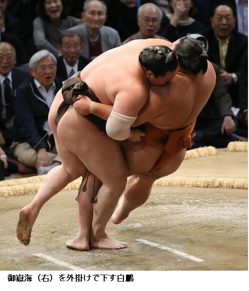 ▽大翔丸に琴奨菊は、大翔丸が寄り切り。