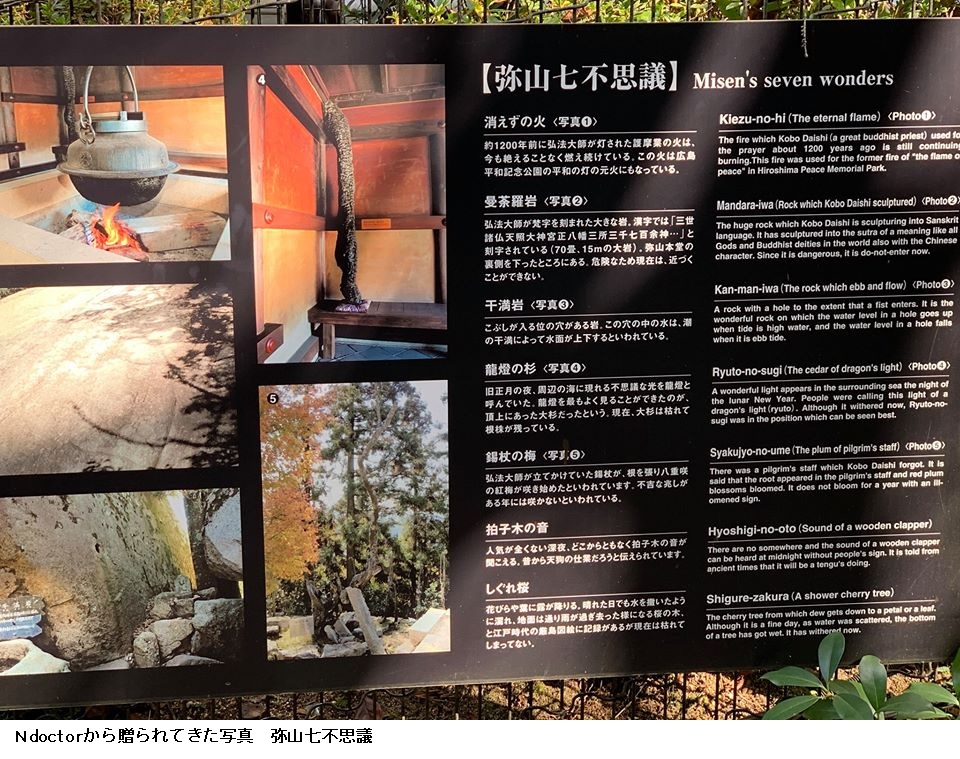 まず、11月のはじめN doctorが宮島 弥山の七不思議の写真を送ってくれましたので弥山の七不思議について調べてみました。