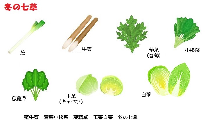 葱牛蒡 菊菜小松菜 菠薐草 玉菜白菜 冬の七草