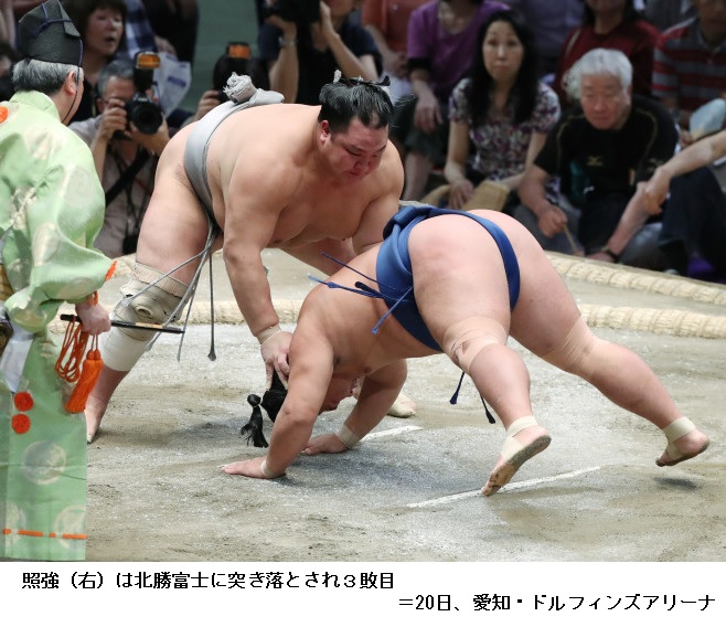 △北勝富士に照強は北勝富士が突き落としで勝ちました。照強は3敗に後退しました。