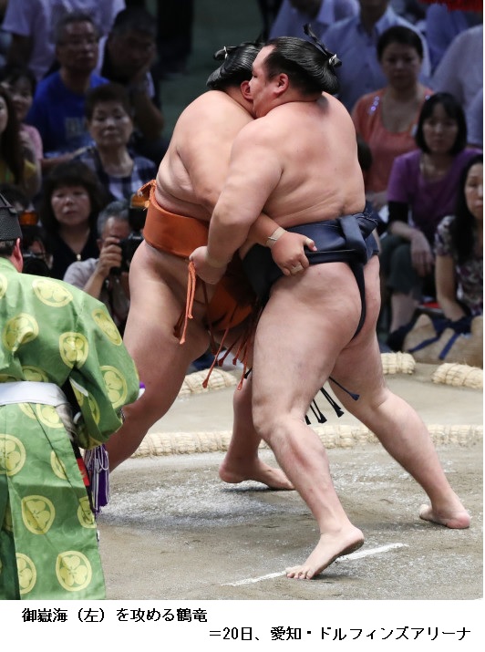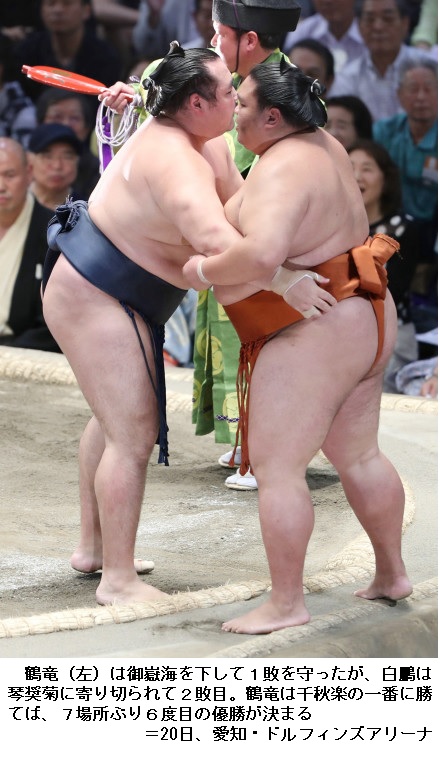 大相撲名古屋場所 千秋楽の結果 ―― 大相撲名古屋場所は千秋楽、横綱 鶴竜が2敗の横綱 白鵬を破り14勝1敗で7場所ぶり6回目の優勝を果たしました。