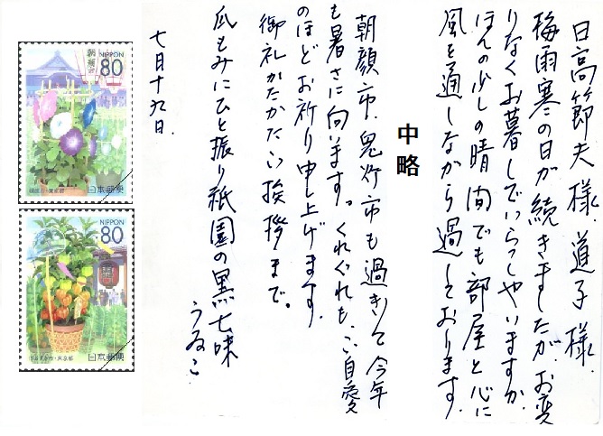 川崎のうゐ子女史から、夏の挨拶状が届きました。