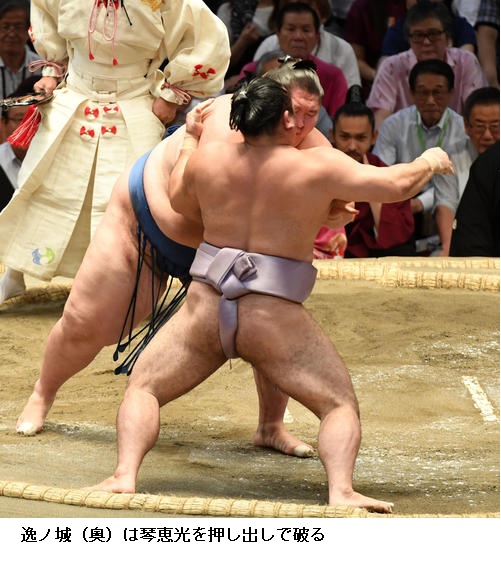 △琴恵光に逸ノ城は逸ノ城が押し出し。