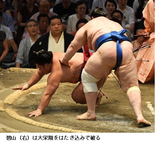 △碧山に大栄翔は碧山がはたき込みで勝って勝ち越し。