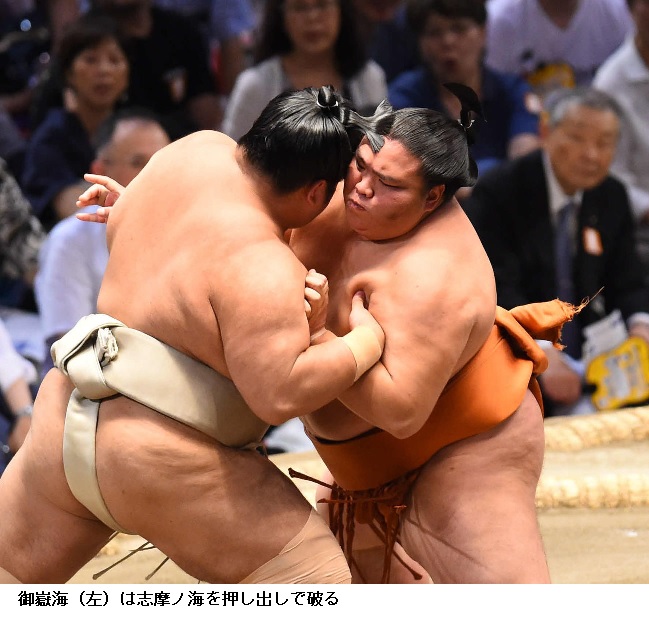 △御嶽海に志摩ノ海は御嶽海が押し出し。