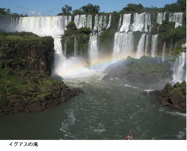 先住民の言葉で"大いなる水"という意味を持つこの滝は、北米のナイアガラの滝、アフリカのビクトリアの滝と並んで『世界三大瀑布』の一つに数えられています。 『イグアスの滝』の凄さはなんといってもその水量。一分間になんと、東京ドーム約3倍分の水が流れ落ちているんです!