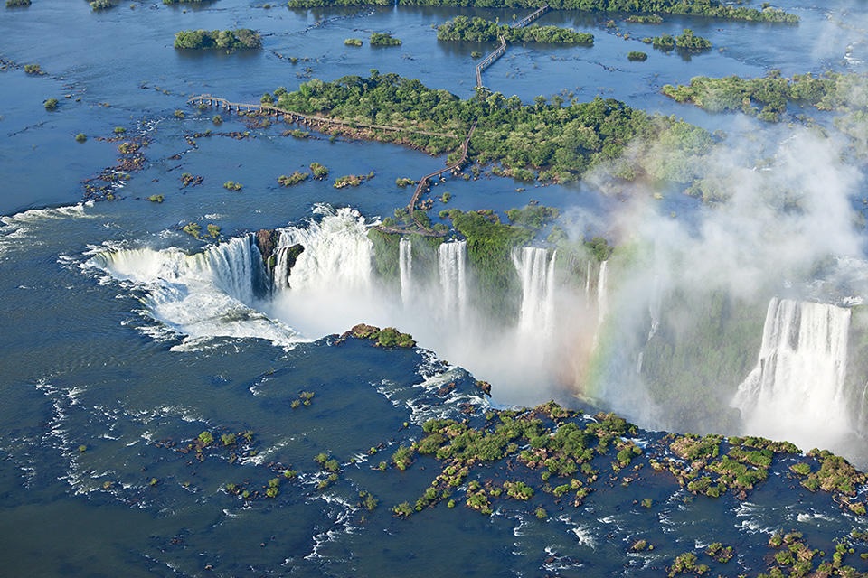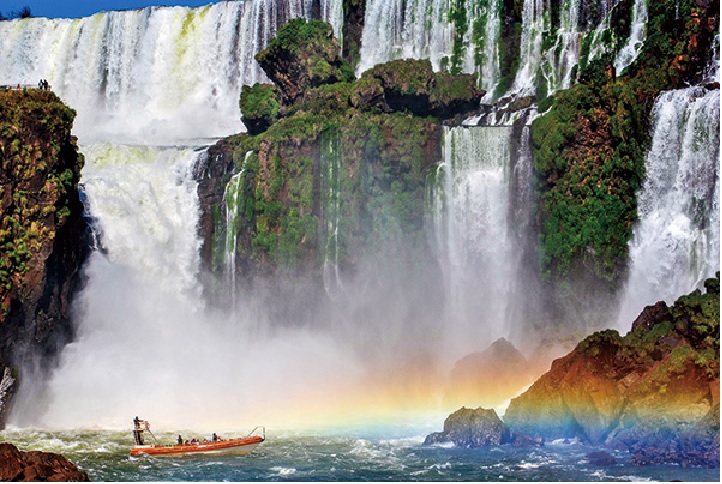 一方、『ブラジル側』からは滝の全景を見渡すことができ、視界いっぱいに"水のカーテン"が広がる様はまさに圧巻。特に水量が増える10月から3月は"滝観賞のトップシーズン"といわれており、"滝"は勢いを増して荒らぶります。白く煙った水しぶきに七色の虹がかかり、まるで天国と地獄を同時に見るかのような不思議な光景が広がります。