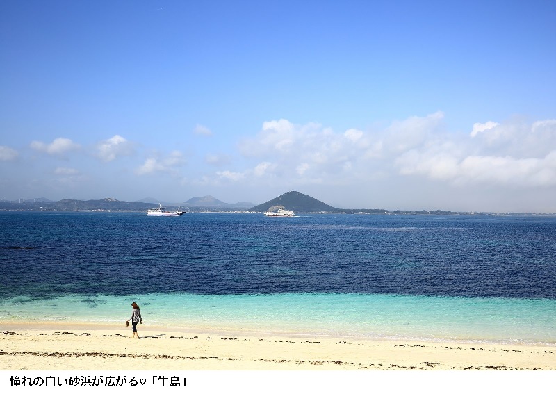 「牛島(ウド)」は、済州島の本島からフェリーで15分ほどのところにある小さな島で、エメラルドグリーンに輝く美しいビーチが人気の観光スポットです。