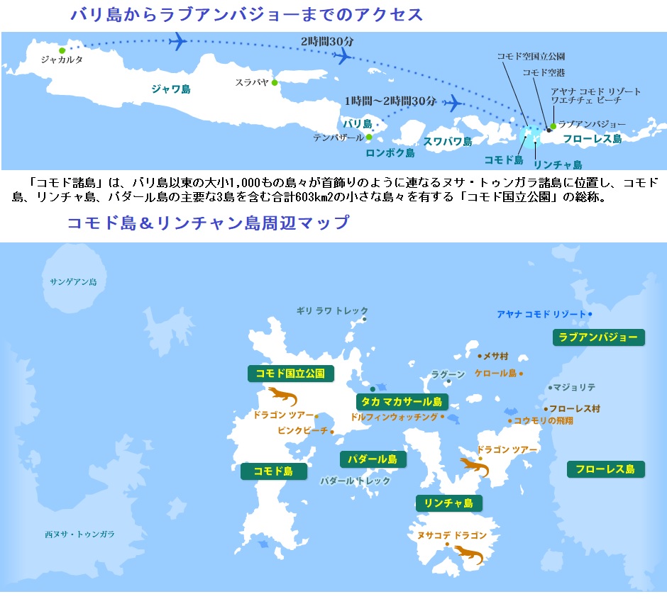 「コモド諸島」へは、バリ島からフローレス島の玄関口 ラブアンバジョー空港(コモド空港)まで国内線で約90分。