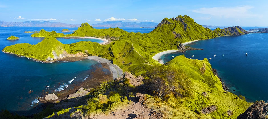 コモド島とリンチャ島の狭間に浮かぶパダール島の山の主峰は、美しい3つの入り江を一望できる「コモド国立公園」の絶景ポイント。インスタ映えする丘の上まで約30分のトレッキングは初心者の方でもお楽しみいただけます。