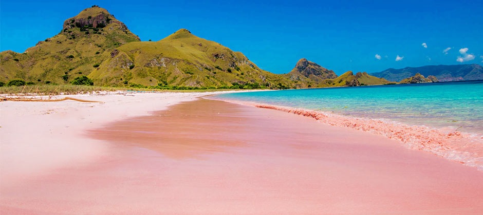 コモド島の東側にあり、世界的にも珍しい白い砂浜と分解された赤いサンゴでできたピンク色の砂浜。インドネシア語で “赤いビーチ”を意味する、“パンタイ・メラ”とも呼ばれています。