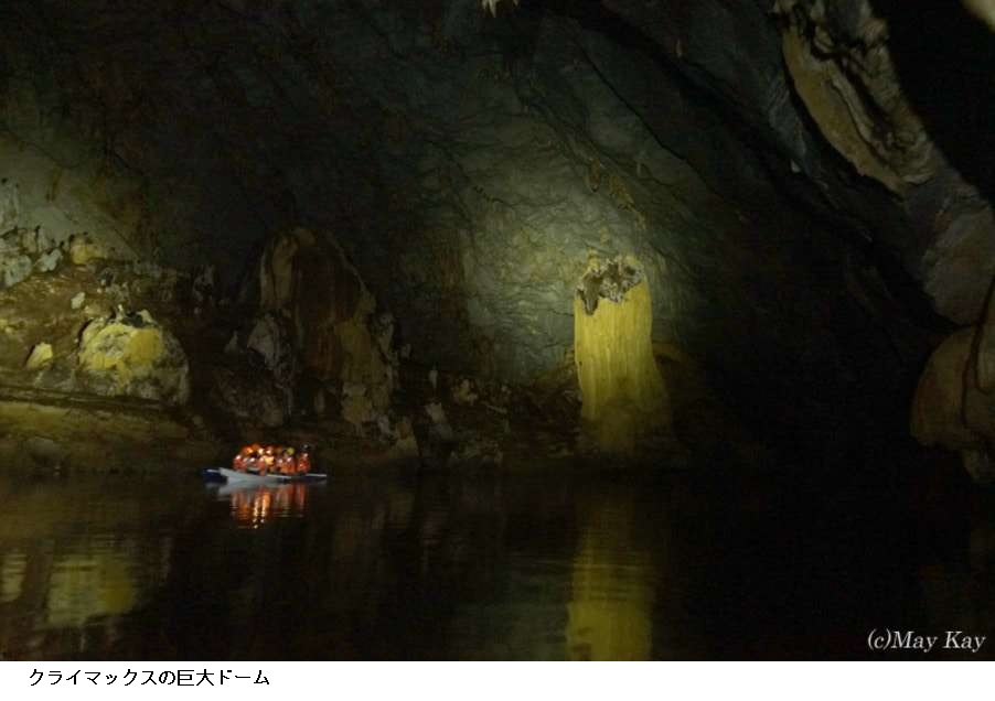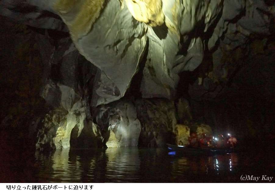 洞窟内でのフラッシュ、もちろん壁などに触ることも厳禁です。ボートの船頭が持つライトだけが道しるべ。わずかな光と経験を頼りに、漆黒の闇の中を巧みな操縦術でそびえ立つ鍾乳石をきれいにスルーする船頭はさすがです。見ているだけで実にスリリング!