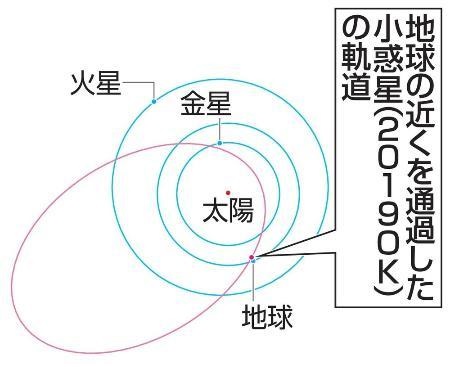米紙ワシントン・ポストによると時速8万6千キロで通過するのを、米国とブラジルの天文学者らが発見した。国際天文学連合によると、「2019OK」と名付けられたこの小惑星は、地球から約7万2千キロ離れた場所を通過。月との距離の5分の1ほどで、天文学的にはニアミスだった。 (共同通信 2019年7月29日 / 21:51 / 7時間前更新)