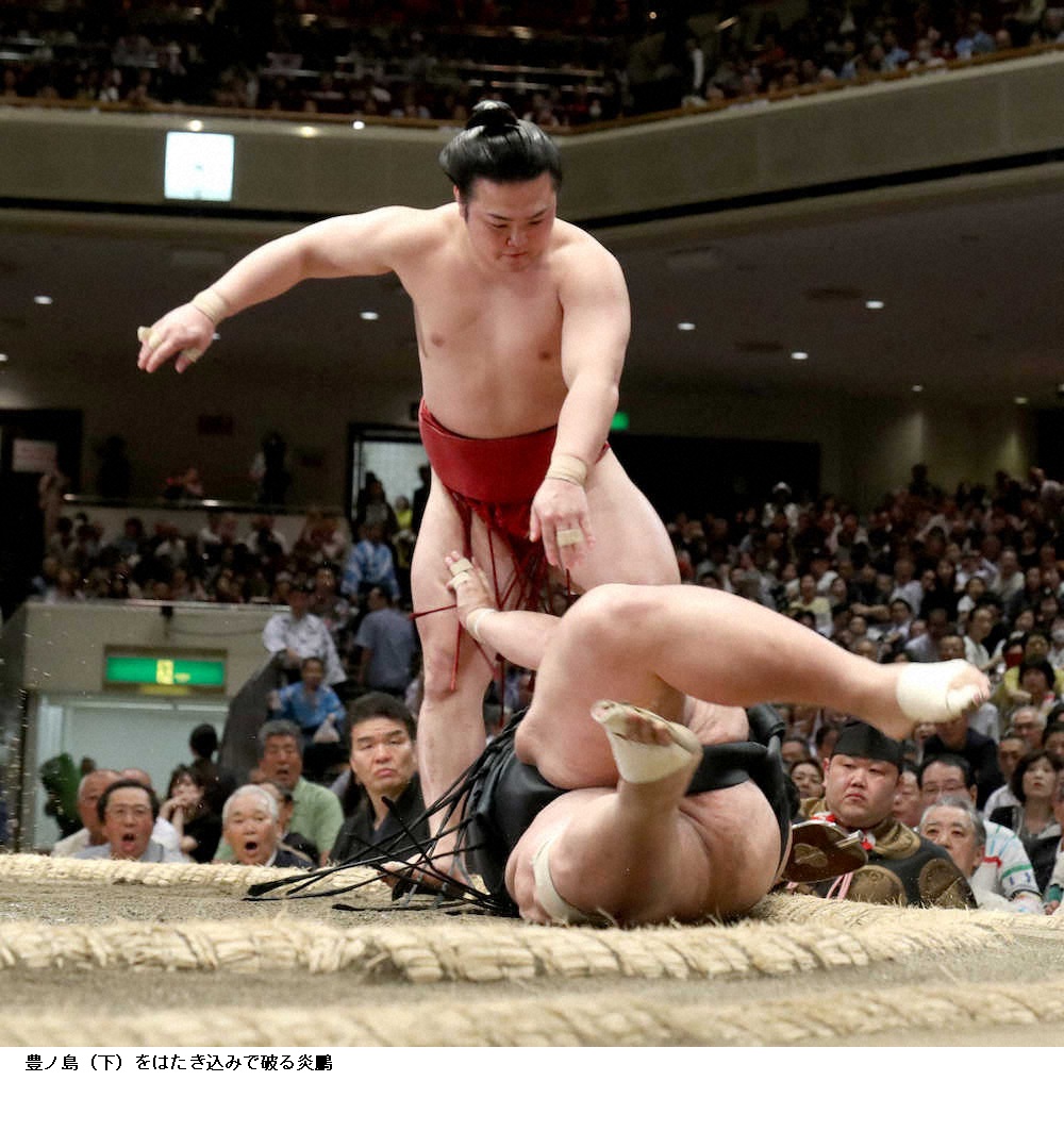 十両の豊ノ島に炎鵬は、炎鵬がはたき込みで勝って7勝目です。
