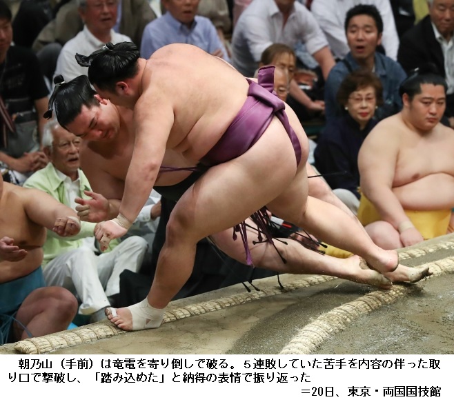 勝ち越しの朝乃山「しっかり踏み込んでいる」