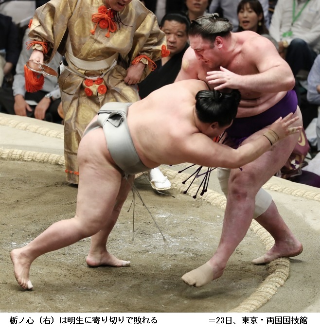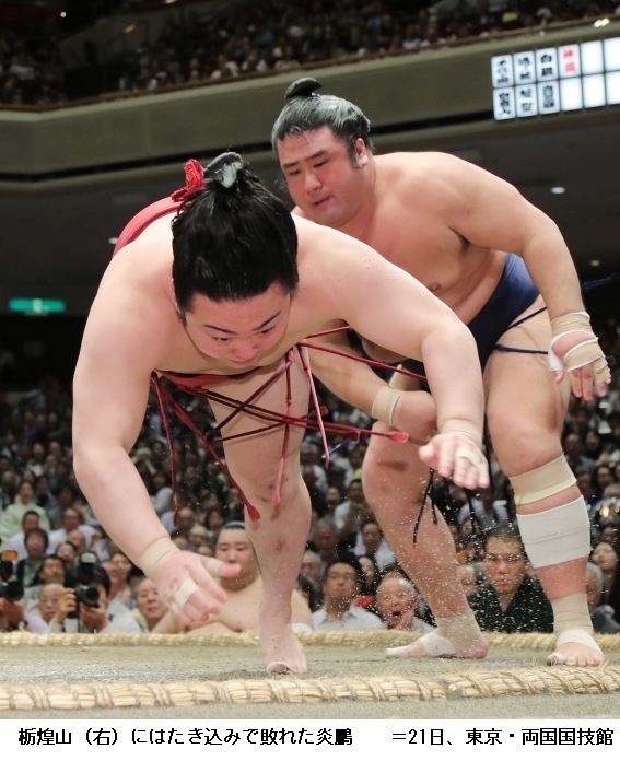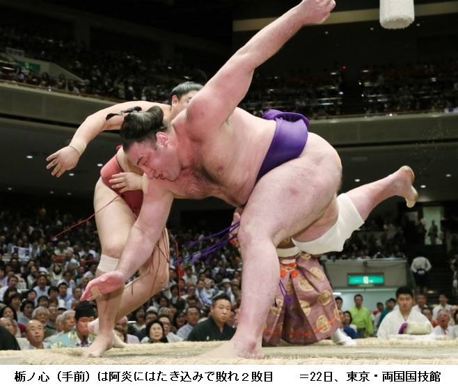 阿炎に栃ノ心は阿炎がはたき込み。栃ノ心は大関復帰を22日決めることはできず、2敗に後退しました。