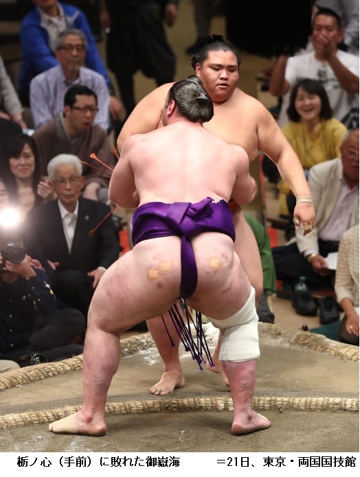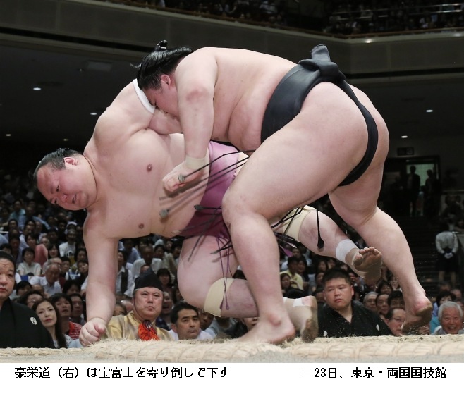 隠岐の海に大関 豪栄道は豪栄道が突き落とし。隠岐の海は負け越しです。