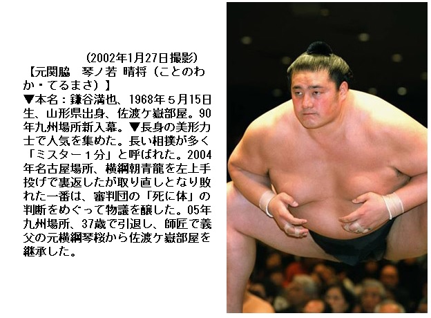 身長1メートル69センチの照強は、平成13年初場所から新たに追加された決まり手、「送り掛け」を十両以上では初めて決め、「今場所は勝手に足が出るし相手が勝手にかかる。自然に出るのはいい」とご機嫌でした。